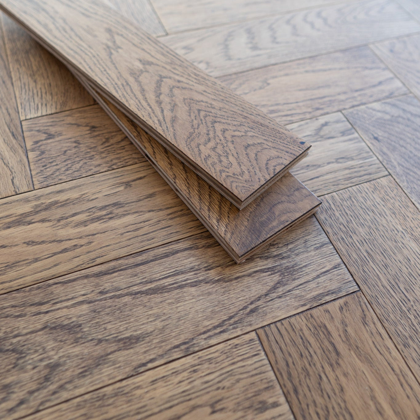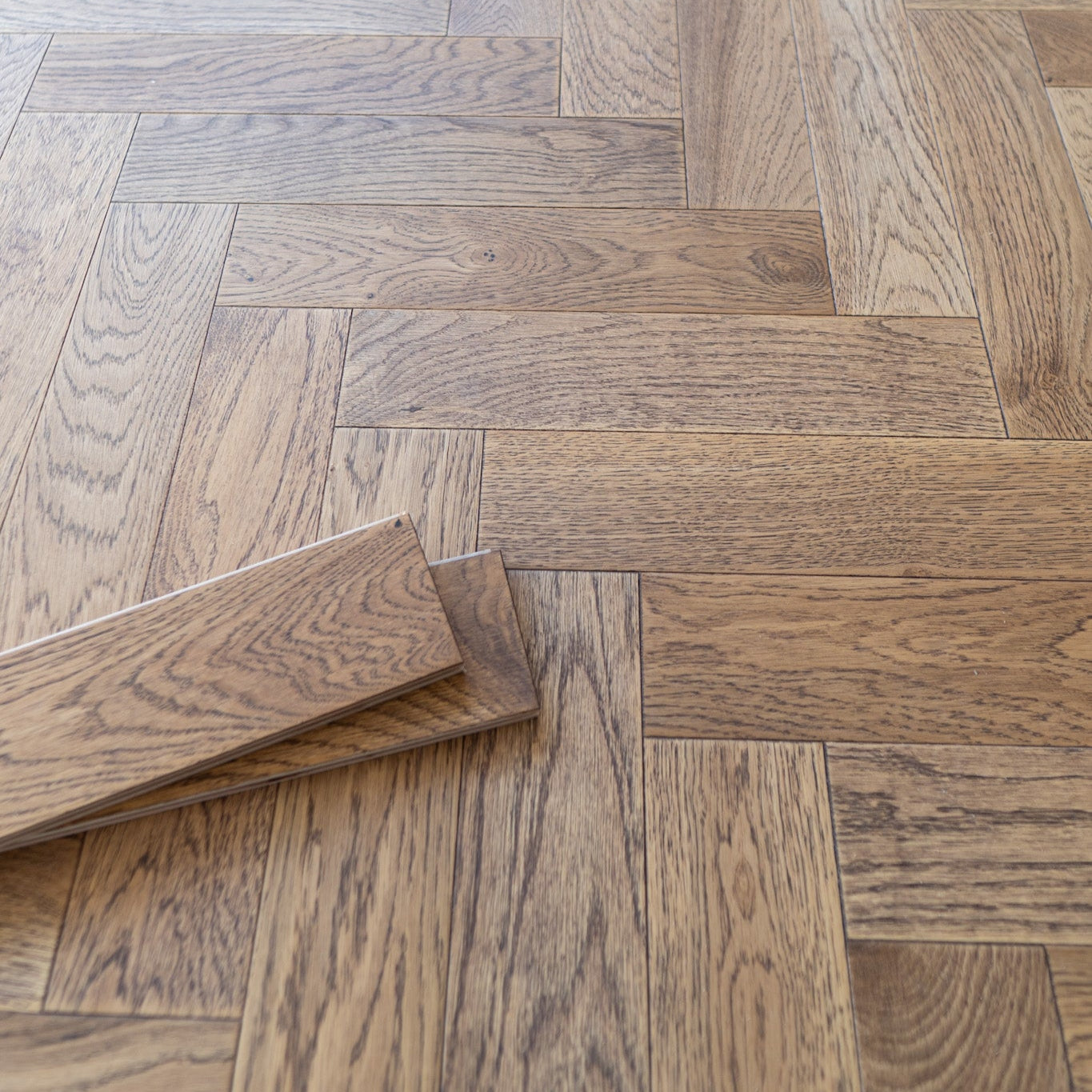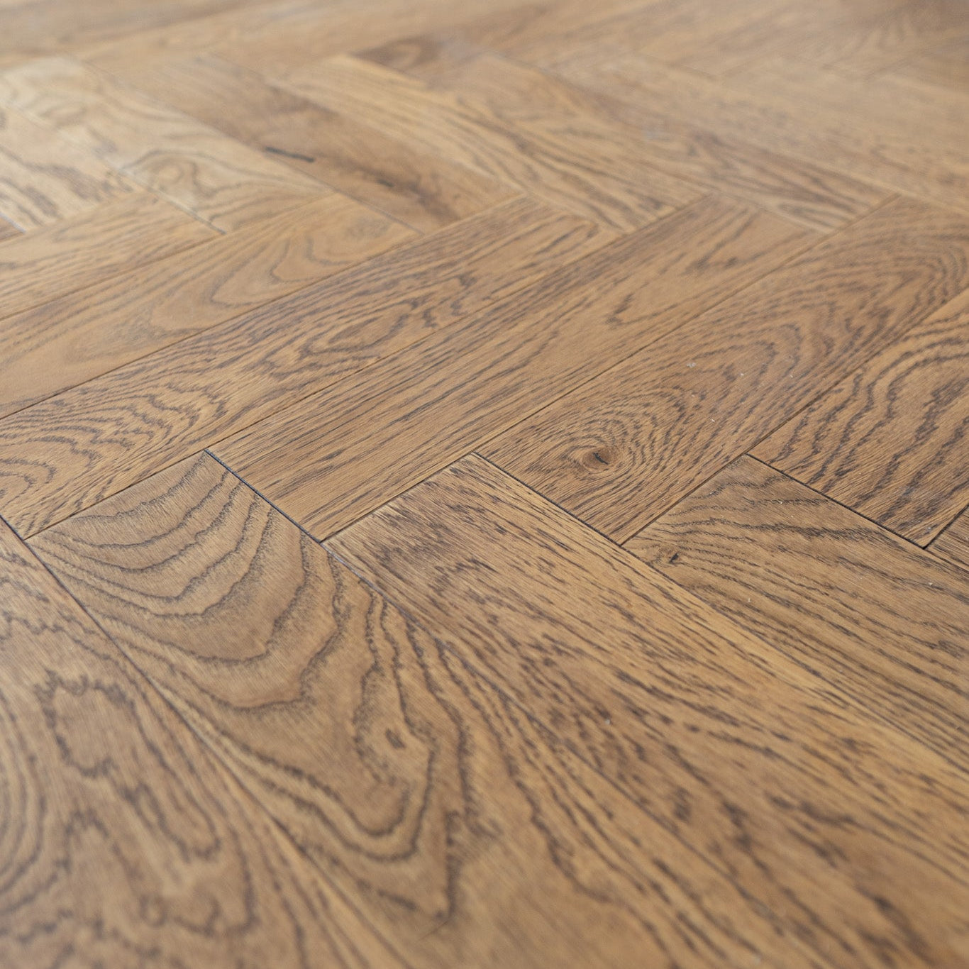 Cottage Oak Herringbone Engineered Wood Flooring is 14mm thick, with a 3mm solid oak veneer, making it one of our most durable engineered floors. Cottage Oak features a rustic design, which adds a warm and cosy feel to any room. The brushed and lacquered finish offers a balance between texture and protection. The brushed effect adds visual interest, while the lacquer ensures longevity and easy maintenance.